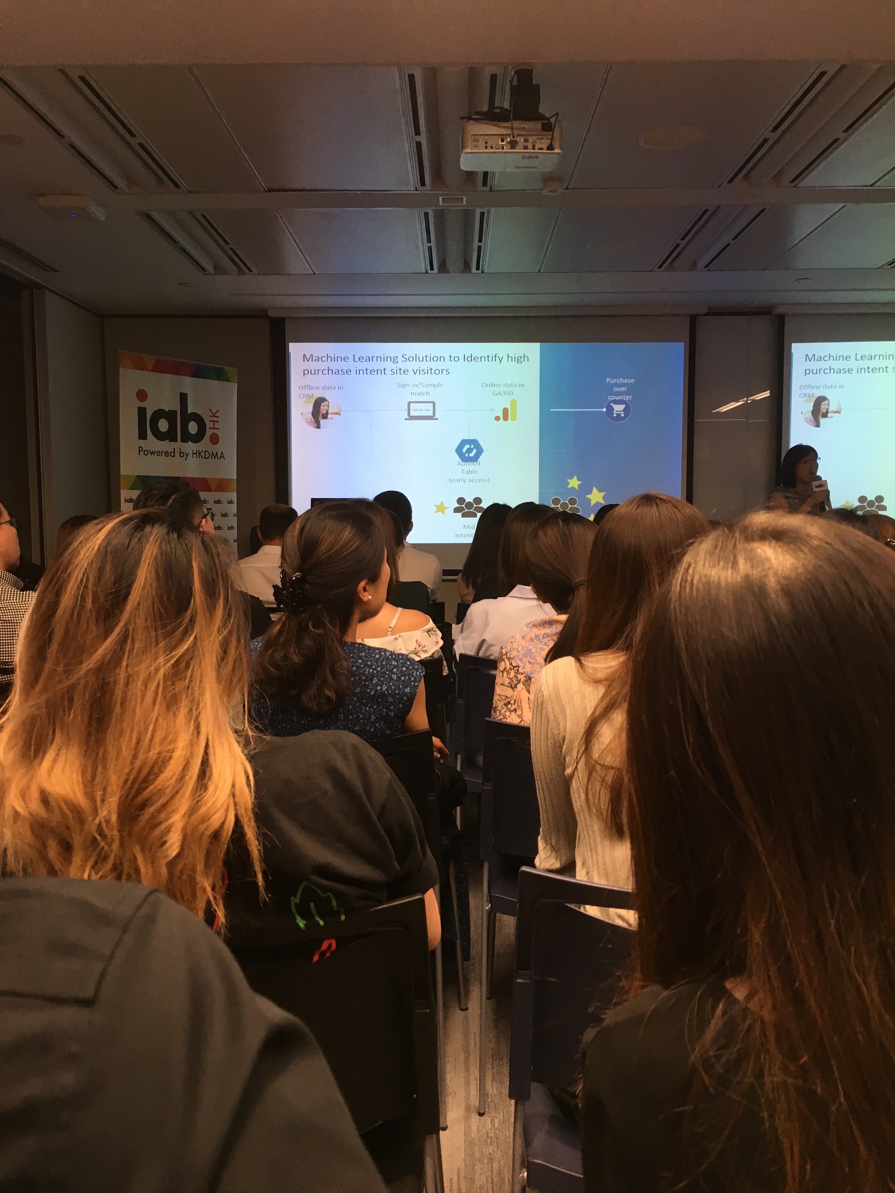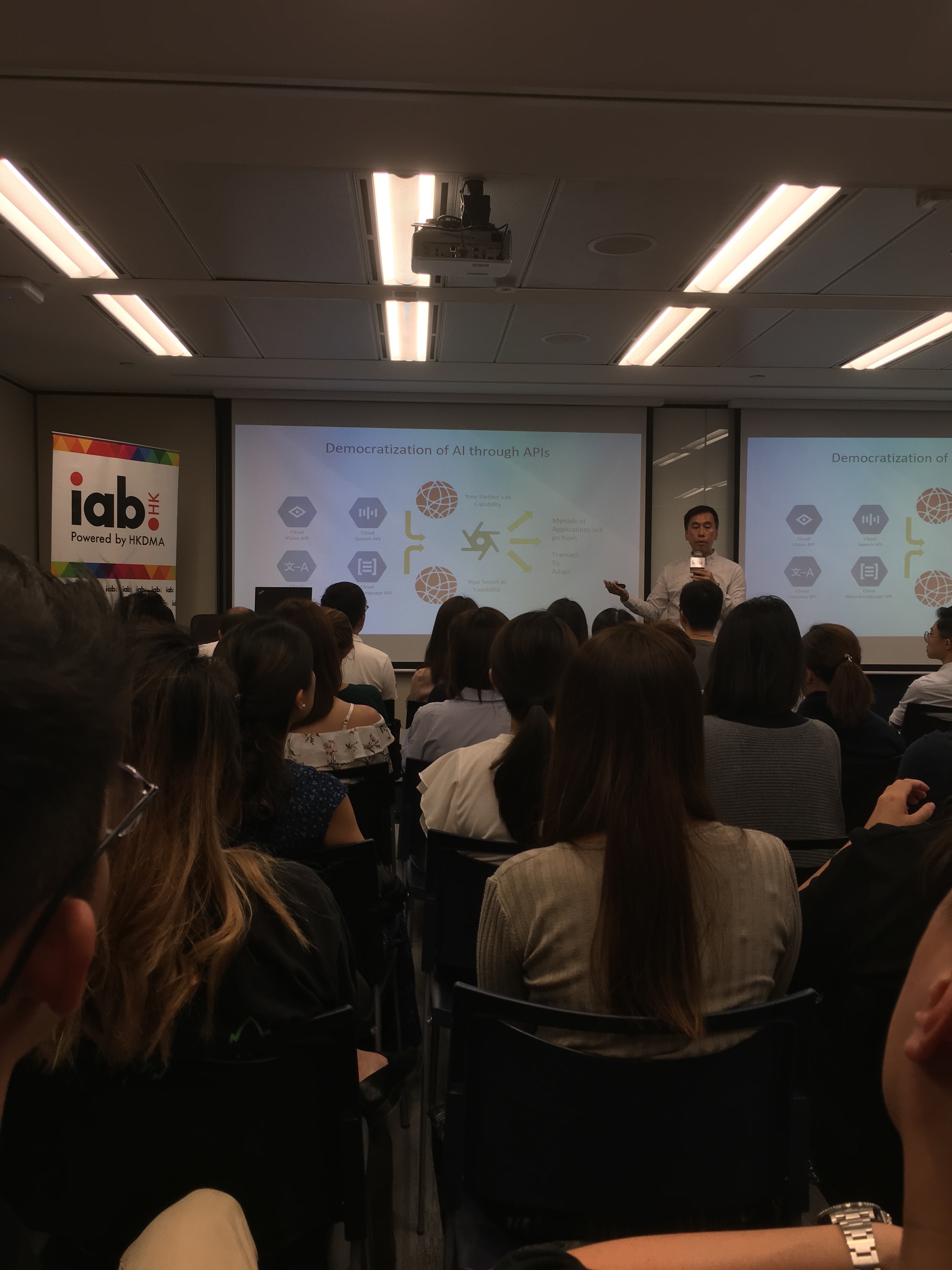 The audience of this meetup was mostly business and marketing focused. Many people were from Google and Facebook, including the speakers, but not from the research or software engineering departments (none of which are based in Hong Kong as far as I am aware). Presentations were about deployment of Machine Learning solutions from a business user perspective who cares essentially about ROI.