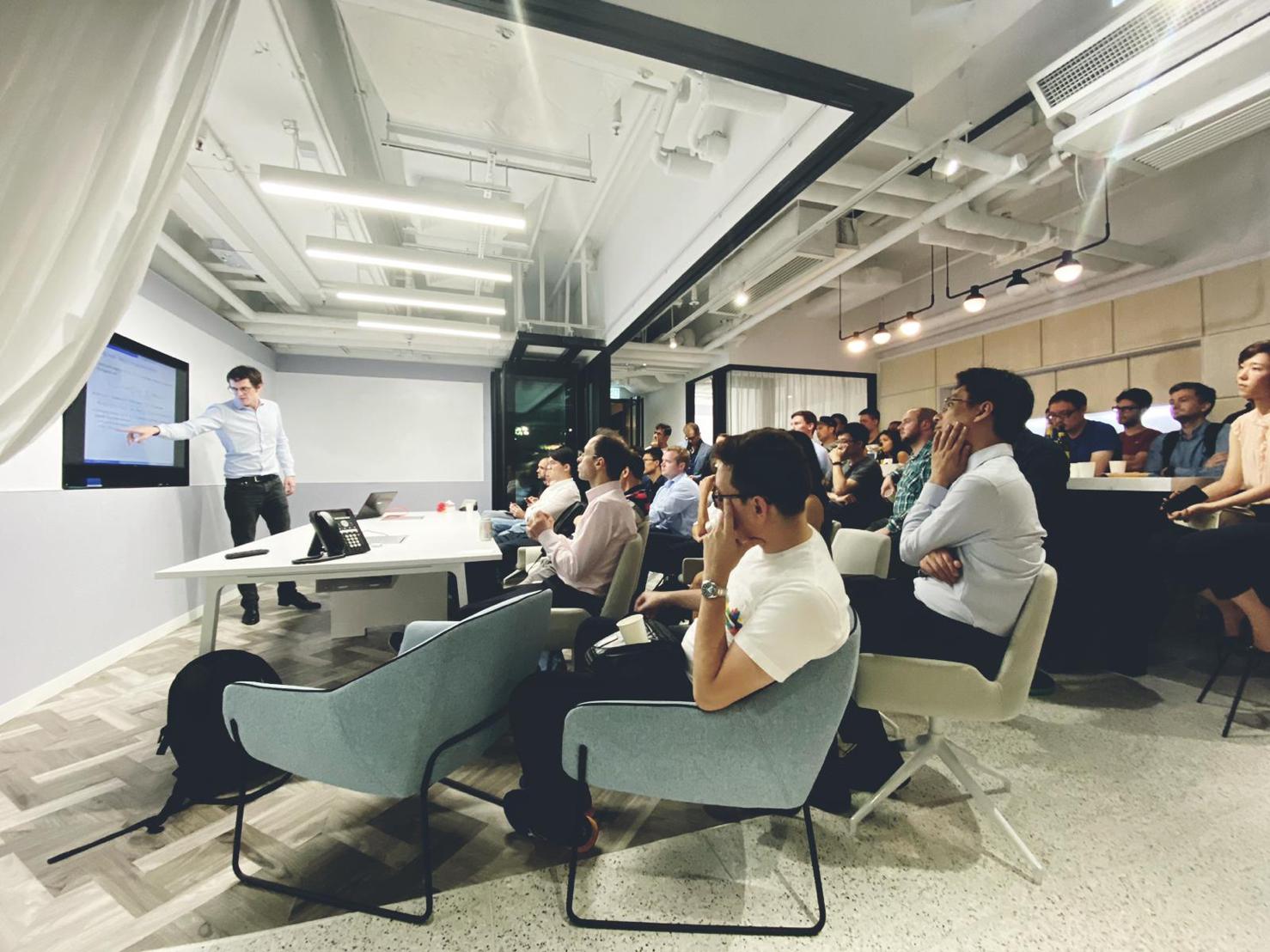 This meetup was sponsored by Prime Insight which offered the location, drinks and snacks. Thanks to them, and in particular to Romain Haimez and Matthieu Pirouelle.