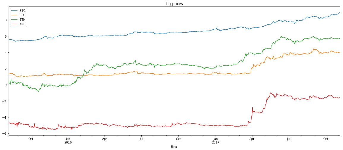 np.log(historical).plot(title='log-prices',figsize=(20,8))