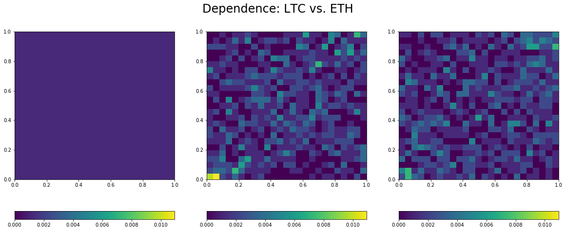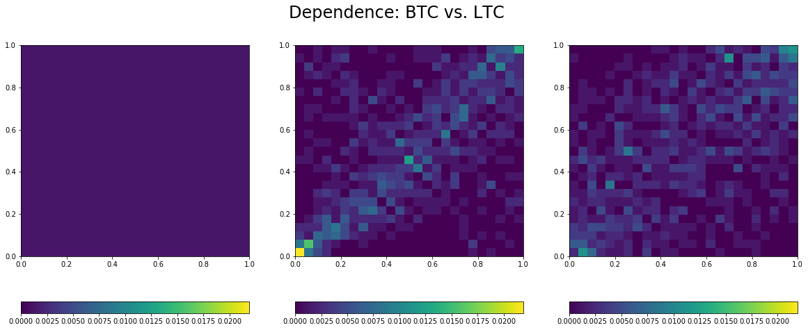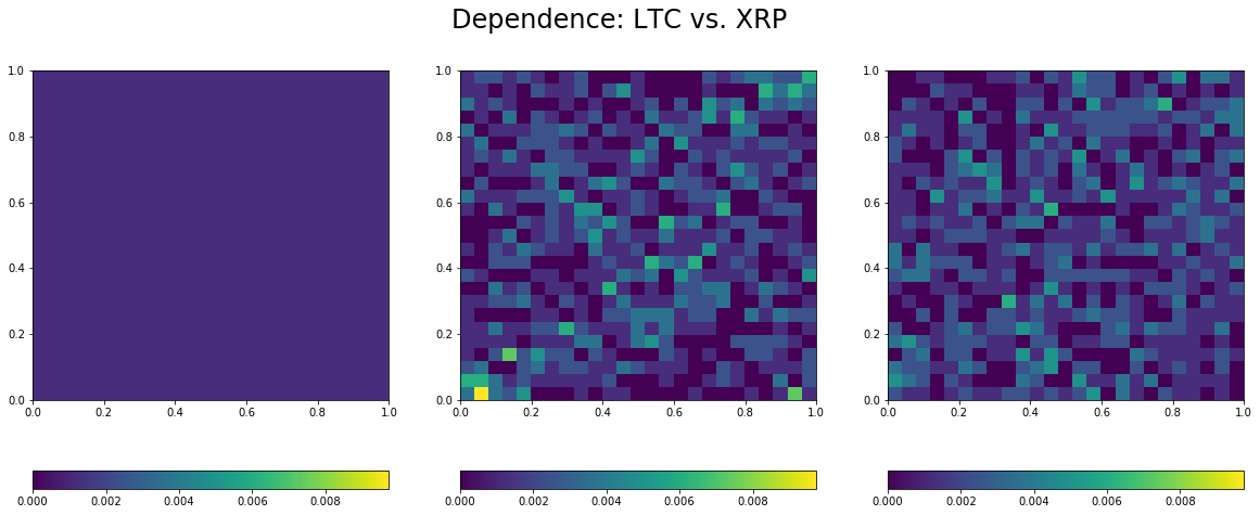 In this blog, we provide a snippet of code to explore the dependence between two variables. We illustrate its use on visualizing the dependence between a few of the main cryptocurrencies: Bitcoin (BTC), Litecoin (LTC), Ether (ETH) and Ripple (XRP).